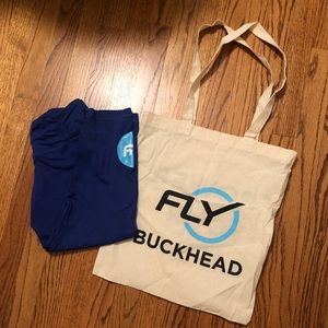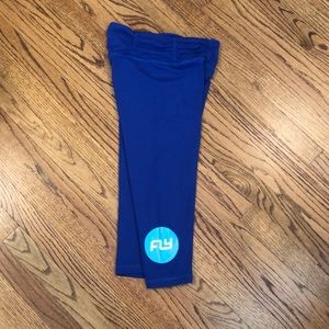 Royal blue cropped Flywheel cycle/workout pants. Spandex material. Fly logo on right leg. Tag says Large but fits more like Medium (6-8).