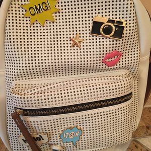 NWT - Perforated Leather Backpack with shoulder straps and adorable pin details.