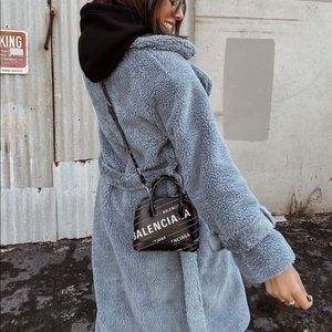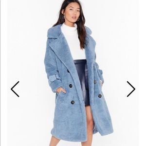 Size s/m, oversized, longline silhouette, notched lapels, double breasted closure, pockets on sides, only worn once