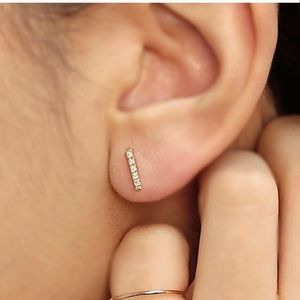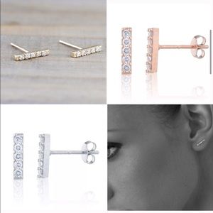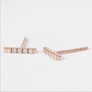 T Bar Lab Diamond 14K Solid Gold Push Back Stud Earrings 8mm NEW