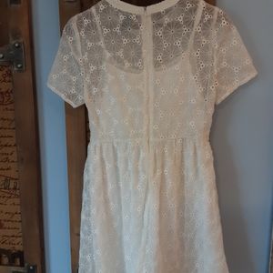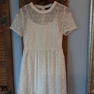 White eyelet, short sleeves. Attached slip. L33", pit/pit 16". Like new! Really pretty for summer.