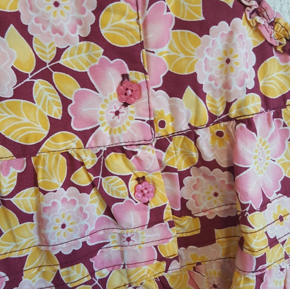 Cute 2 piece summer Sun dress set. Orange, pink & yellow flowers & leaves. Very light & perfect for hot days. Brand is Carters Dress set .Pretty dress that flares out.