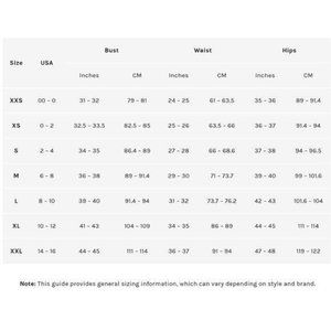 Model Measurements: Height 5'9", Waist 24, Bust 34, Hips 34