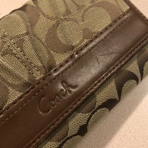 Coach brown signature logo leather wallet/clutch