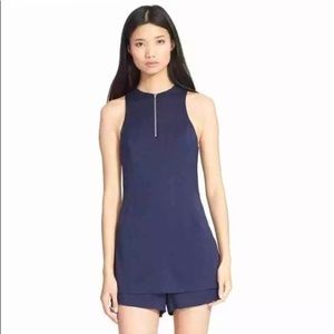 T by Alexander Wang navy romper. Size 8 and true to size. 95% silk...super light and soft! Front zipper can be worn zipped up or down if you want to show more skin. Zipper in the back as well.