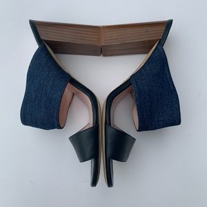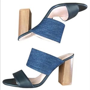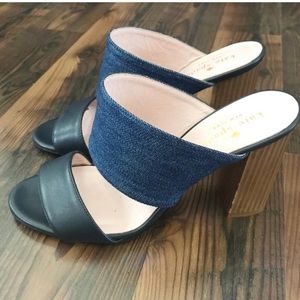 Kate Spade Denim & Wood Block Mule Heels Size 8.5