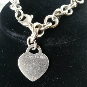 TIFFANY RETURN TO TIFFANY STERLING SILVER BRACELET..100 % AUTHENTIC...SO STUNNING SIMPLY BEAUTIFUL..PERFECT FOR EVERY OCCASION...VERY MINOR WEAR.HAS SOME SCRATCHES AS SEEN IN PHOTOS .MEASURES 7 INCHES.. PLEASE CLICK ON PHOTOS TO GET A CLOSER LOOK. AS SEEN IN PHOTOS STILL VERY LOVELY.