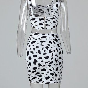 Go out with the girls and paint the town red in this Leopard Print Cami Top & Zipper Slit Mini Skirt!