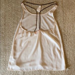 Cute sheer blush tank with black beaded straps. Size S. One once. Super cute on!