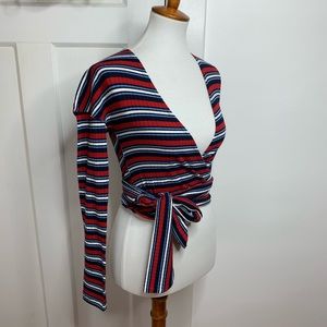 Free People Striped Vneck Crop Wrap Top. Size XS. EUC, excellent used condition. Little to no signs of wear. I