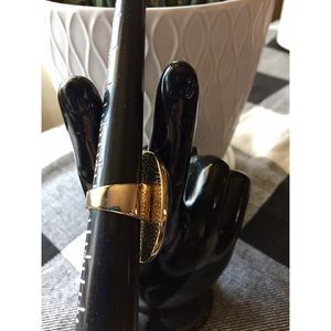 This fun cocktail ring features a large oval statement piece that resembles the crystal Lapis Lazuli and is secured in gold plated metal. Never turned my finger green and always received great compliments!