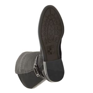 Chevron stitching gives a cool textural twist to a riding boot with plenty of gleaming silvertone hardware and a stretchy back panel to enhance the fit.