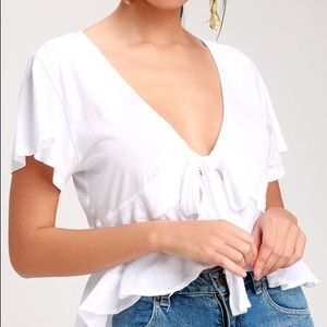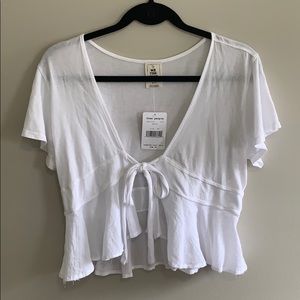 Free People Knot Me White Tie-Front Crop Top