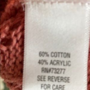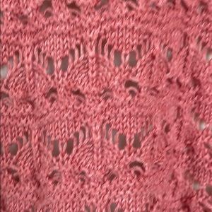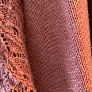 Salmon color sweater for sale. (Note: The shirt is for display only.). The close up pic of the crochet is closest to the actual color.