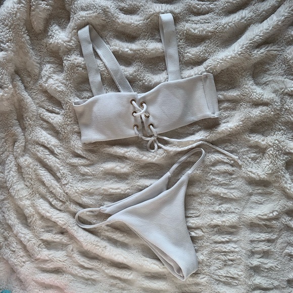 Kylie Jenner inspired white bikini. Lace up closure the front. Size S but could fit XS as well. In good condition!