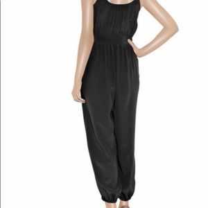 Black silk-crepe jumpsuit. Marc by Marc Jacobs jumpsuit has a scoop neck and back, spaghetti straps, slightly cropped legs, elasticated cuffs, a self-tie belt at waist and simply slips on. 100% silk. Dry clean. Like New, No Damage!