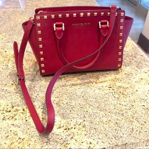 Authentic Michael Kors Maroon Leather Purse, size medium. Hardware on bag is good. Includes a removable/adjustable strap.