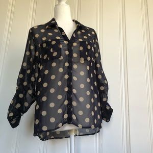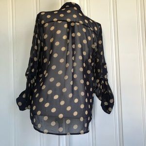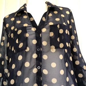 Dark blue blouse with tan polka dots