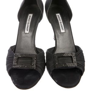 Black Nylon Manolo Blahnik d’Orsay Pumps with Crystal embellishments at uppers and covered heels.