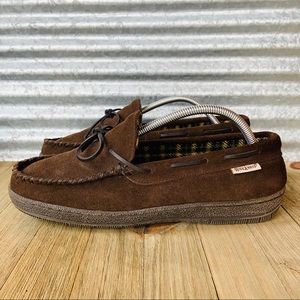 Brown suede leather slippers, Hideaways by LB Evans
