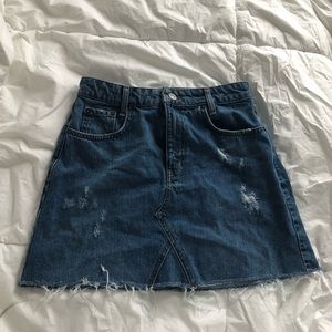 I’m a size 25 so this skirt is a bit big on me - I have NOT worn this skirt. If I had to guess it would fit around size 27/28. It is made of great material - urban outfitters BDG. It has a few very small rips in the front, two pockets in front and back. The fit is NOT meant to be very tight, but it still looks super flattering on!