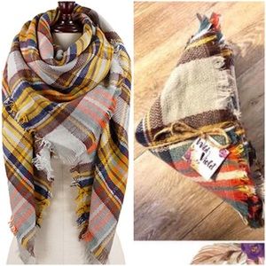 Rust/Teal/Mustard Plaid Triangle Blanket Scarf