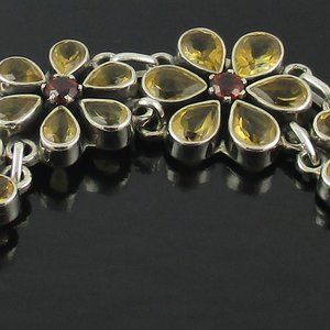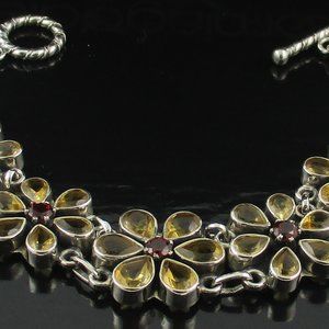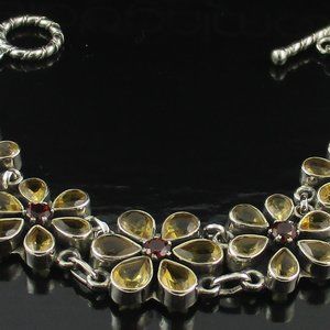 Artisan Crafted Sterling Silver 8.70ct Citrine & Garnet Floral Toggle Bracelet. Bracelet measures approx. 7-1/2" Long. Center flower measures approx. 10/16" Wide x 10/16" Long. The other four flowers measure approx. 1/2" Wide x 1/2" Long. The bracelet is stamped .925 - Made in India.