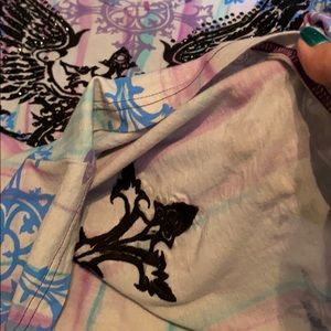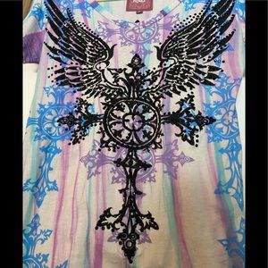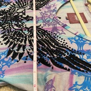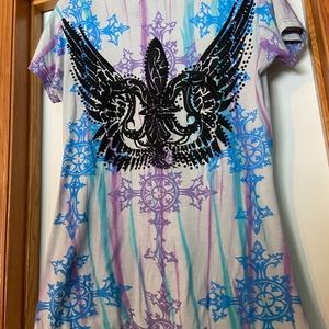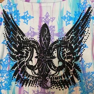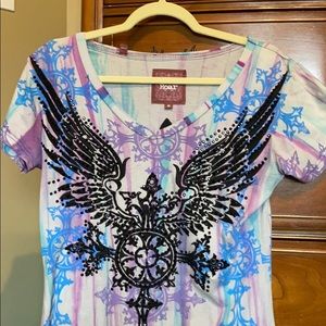Roar T-shirt . Blue purple with black emblem and sequences. Like new only worn a few times. Pet free and smoke free home