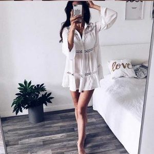 White Boho Button Up Long Sleeve Coverup Top