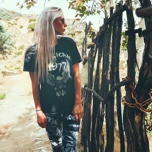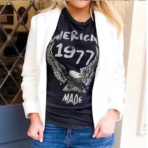 Graphic t-shirts are all the rage! Bohemian rock silver printed Eagle ‘American 1977 Made’ tee.