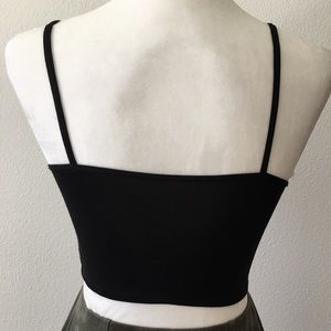 Super cute! Soft material. Black strappy crop top / bralette. Slightly sheer material - bra underneath recommended. I have another one in my closet that is more opaque but more sportswear-like material.