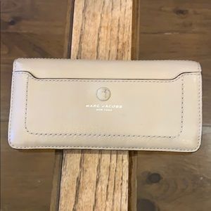 Marc Jacobs Tan Leather Long Snap Closed Wallet. 8 credit card slots. Zip pocket for change, two money holder slots.