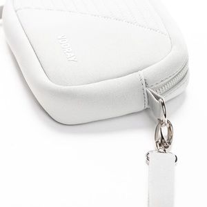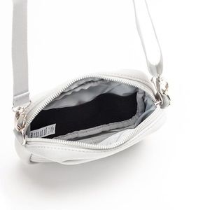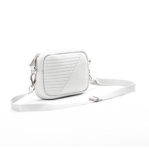 This purse is new with tags. Never used. Perfect mini bag for the gym. Sporty and lightweight. Rock it as a crossbody or try it as a belt and winch it around your waist. It is a light gray. Some of the photos can be deceiving. NEW TO POSHMARK: Sign up with code TALLGIRLSCLOSET for a $5 credit after first purchase.