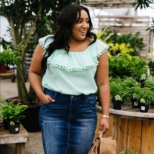 FINAL SALE❗️Penelope Pom Pom Off Shoulder Top Mint