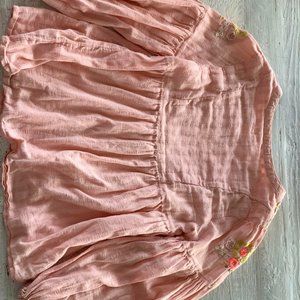 Pink and flowery blouse. 100% cotton, embroidery: 100% polyester
