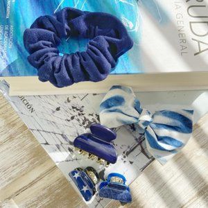 BLUE SCRUNCHY / STATEMENT MINI HAIR CLIPSSEARCH TOOLS MESSY BUN ACCESORIES BLUE BOHO STYLE VELVET SCRUNCHY EMBELLISHED HEAD BAND WRAP STREET STYLE SUMMER