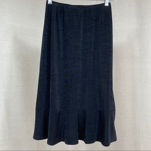 Vintage black skirt with elastic waist and ruffle at hem. Made in USA. Size small.