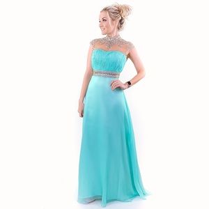 Aqua Chiffon Illusion Evening Gown Prom Dress