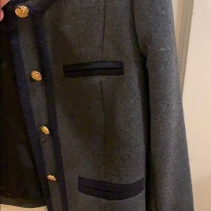 This is called the lady jacket from j.crew. It has beautiful silk lining. Gorgeous gold buttons. In excellent used condition. Only worn 3 time.