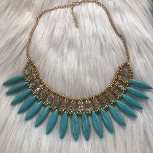 Beautiful piece! Zinc alloy metals and faux turquoise. This piece could be dressed up or worn casually. So pretty! Brand new in package