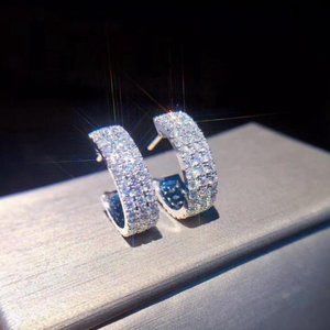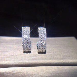 NEW 18K White Gold Triple Diamond Hoop Earrings