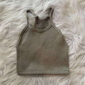The top is a ribbed compression crop, perfect to wear with or without a bra. Color gray