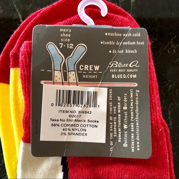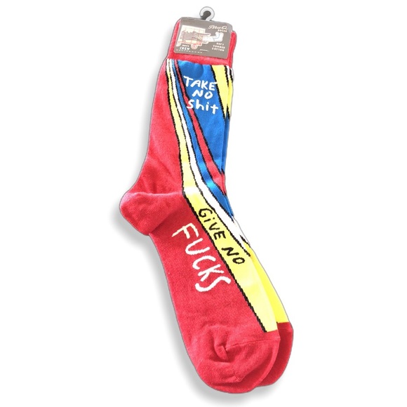 Blue Q Men's Take No Shit Crew Socks. Soft 58% combed cotton/40% nylon/2% spandex. Let the world know how you feel. NWT.