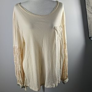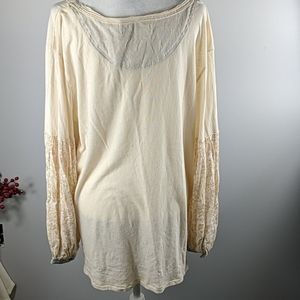Medium free people boho top. Ivory in color super long can be used as shirt dress or tunic as well.