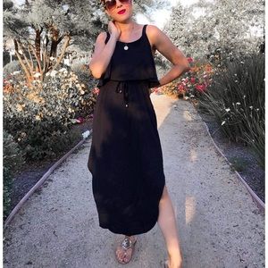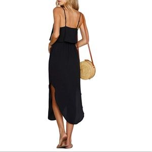 Adjustable spaghetti strap, sleeveless, two side split, elastic waist & bust, ruffle bust, midi/knee length. Makes you be casual and elegant.