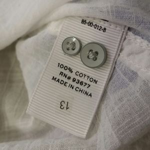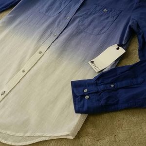 Lightweight semi see-through 100% cotton. Button front with two pockets. Loose and flowing fit. 29 inches long, sleeves 24 inches, armpit to armpit 22 inches. Bright white & light to dark navy blue. New, never worn with original tags.