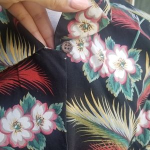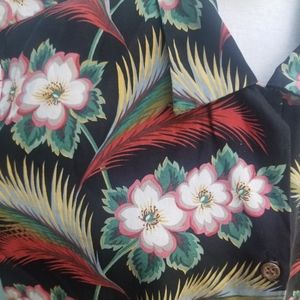 This shirt is sure to bring Hawaii to you! The buttons have a wood panel pattern and the flowers are not too overwhelming with color. It's just right for you!🌺🌷🌻