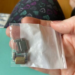 Two tone gold and silver. Small scratch on face but not too noticeable. Wear on band as seen in pictures. Link taken out and included in the Box.