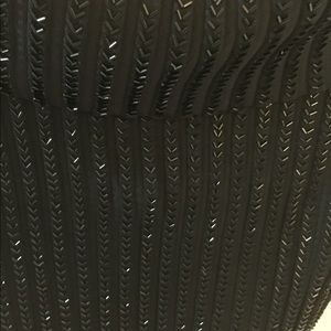 Beautiful on or off the shoulder Black Metallic Beaded Sweater! This Sweater hugs the body, with 3 quarter length sleeve. Nylon & rayon, in perfect condition. I have worn this 2-times with black silk pants & also with a floor length black taffeta skirt!!! Runs Small, so will fit a Size: Large