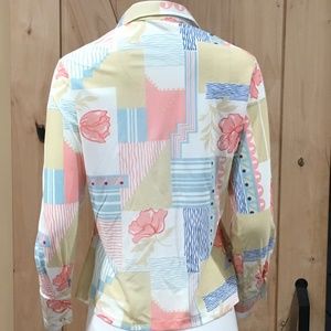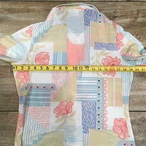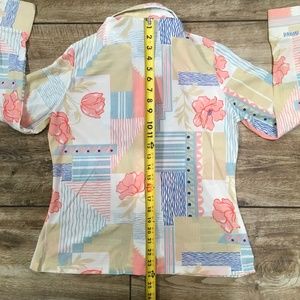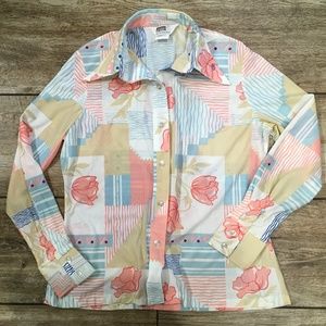 Montgomery Ward Women's Vtg Disco Floral Abstract Blouse Nylon Top Sz 38